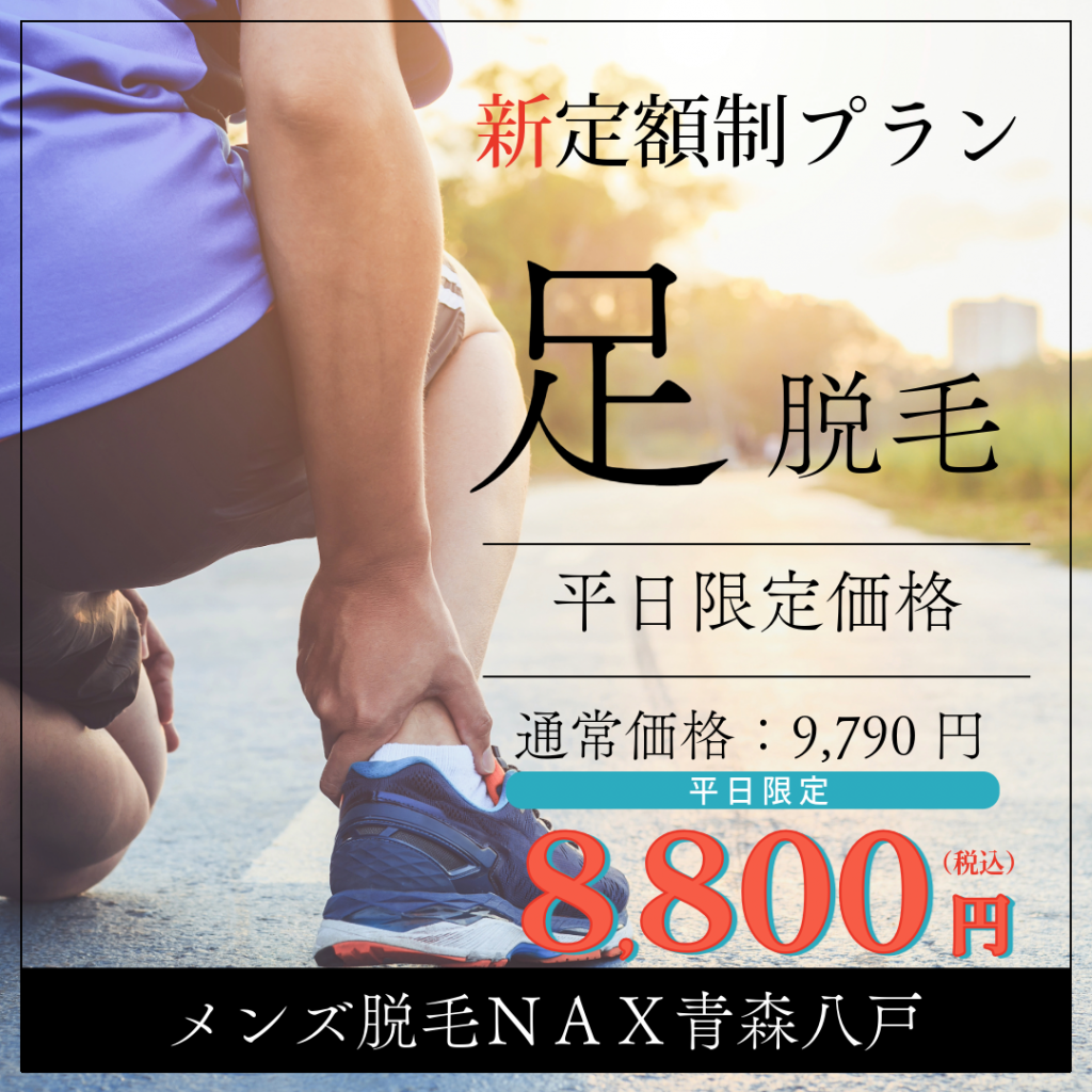 | 詳細 | 初めての方限定で足脱毛(太もも、すね、ひざ、足の指、足の甲)が3,500円の特別価格でお試しいただけます。※シェービングの上ご来店ください。【メンズ脱毛/八戸/城下/十和田/三沢】【無料カウンセリング込】 |